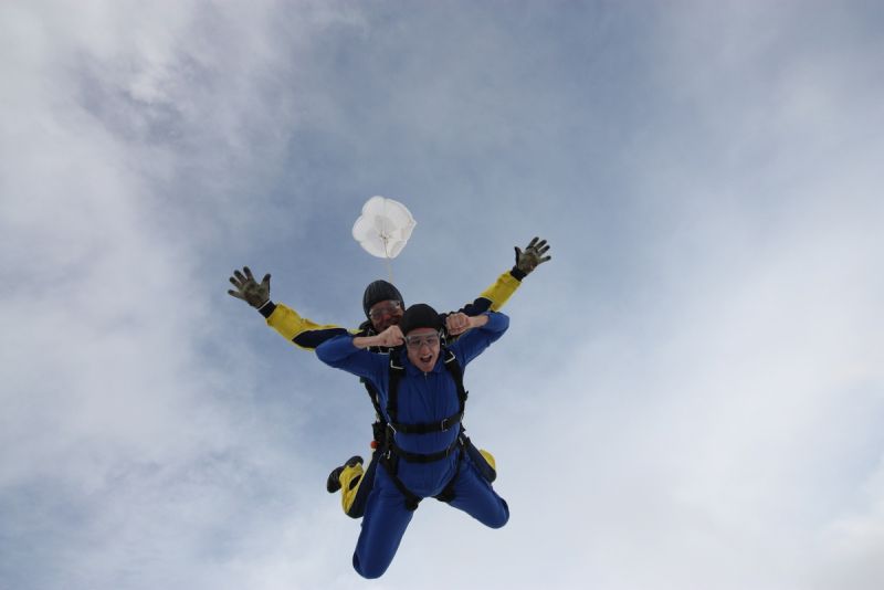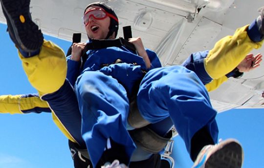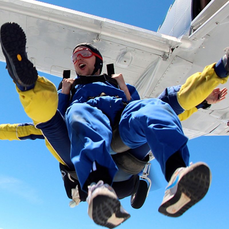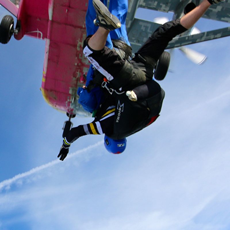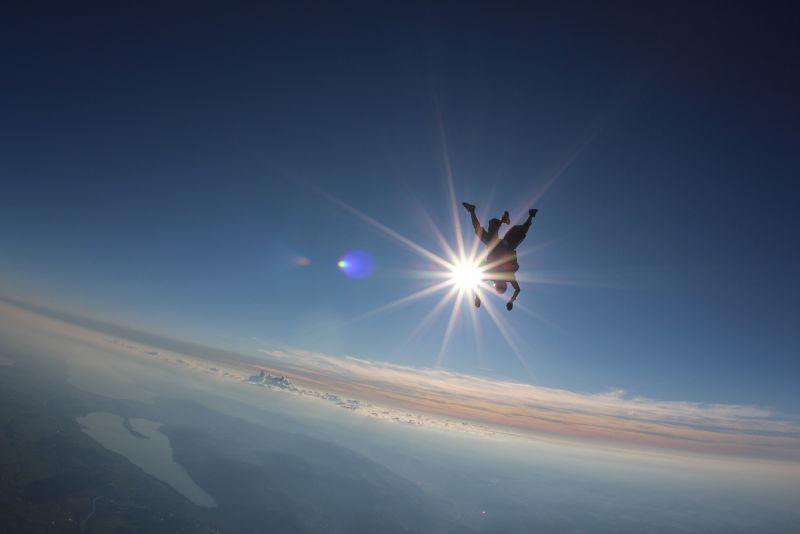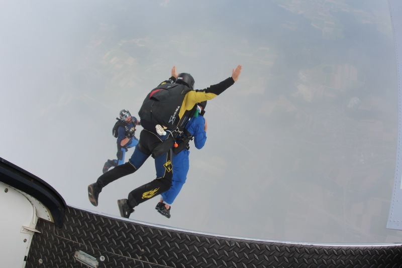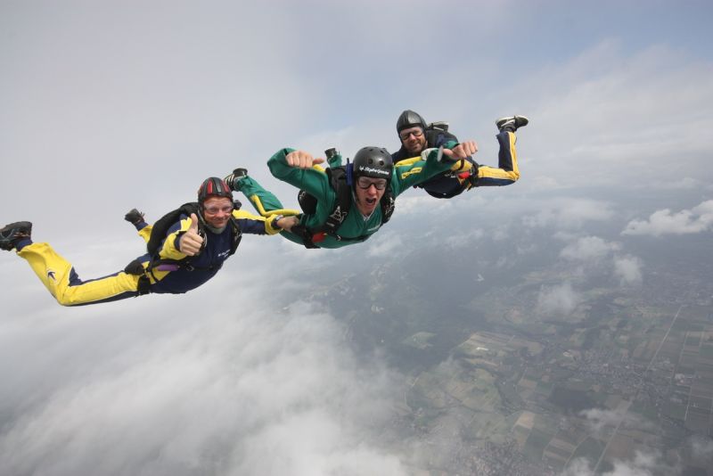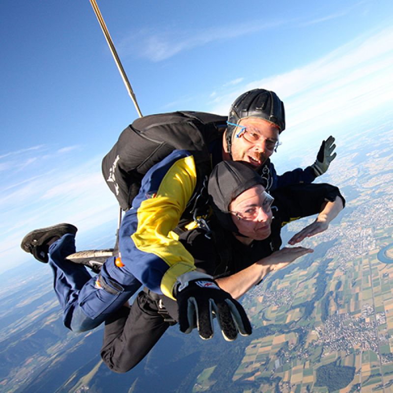 Natürlich. Wir können – vorausgesetzt das Wetter macht uns keinen Strich durch die Rechnung – Gruppen von bis zu 25 Leuten pro Tag problemlos in den Freifall bringen. Dabei profitiert die Gruppe gleich dreifach. Erstens kann dieses einmalige Erlebnis mit Gleichgesinnten geteilt werden, zweitens gibt es für grosse Gruppen einen Rabatt (unser Sekretariat weiss mehr!) und drittens kann der Absprung gleich mit einer Grillparty bei uns auf dem Sprungplatz gefeiert werden. Aber nur, wenn wir auch mitfeiern dürfen...!